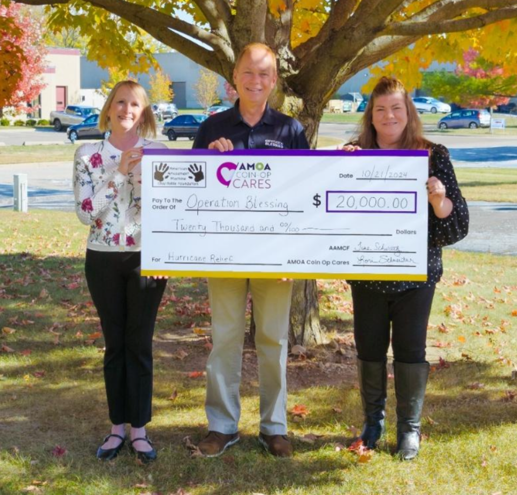 Added Bob Burnham, president of AMOA Coin-Op Cares: “Operation Blessing is on the ground in North Carolina, Georgia and Florida providing vital assistance to survivors of Helene and Milton. The significant and ongoing need for victims of these devastating hurricanes made it easy to direct funds to this humanitarian effort.”