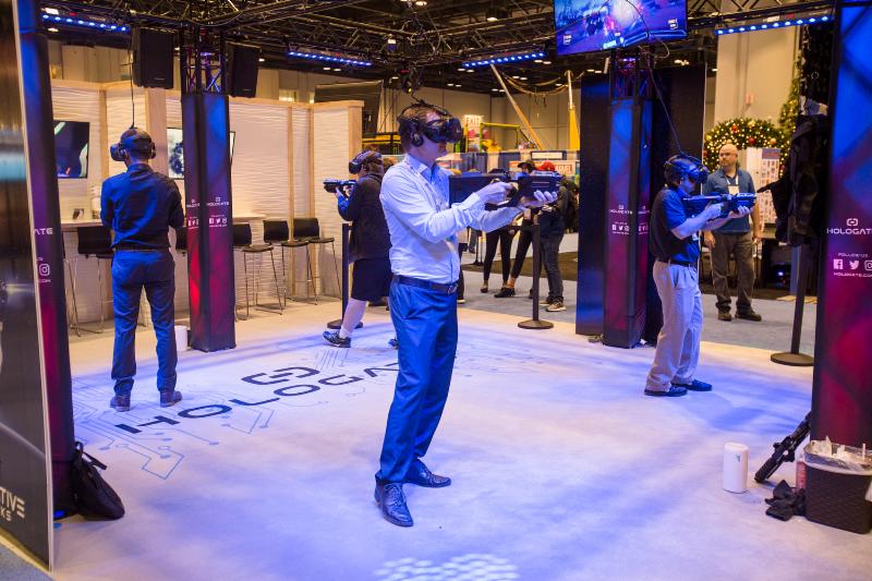 Creative Works also entered the VR fray with the well-refined, beautifully rendered Hologate system. Hologate is a one- to four-player system that takes up around 300 sq. ft., features an impressive 90 FPS HMD, modular components and both player vs. environment and player vs. player gameplay.