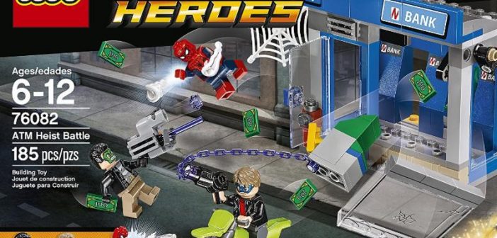 Don’t doubt that ATM robberies have entered popular culture. Now available from Lego and Marvel is a LEGO Super Heroes ATM Heist Battle kit. The kit, which includes two ATMs along with two masked criminals and Spider-Man figures also has a chain by which the criminals attempt to drag the ATM from the location.