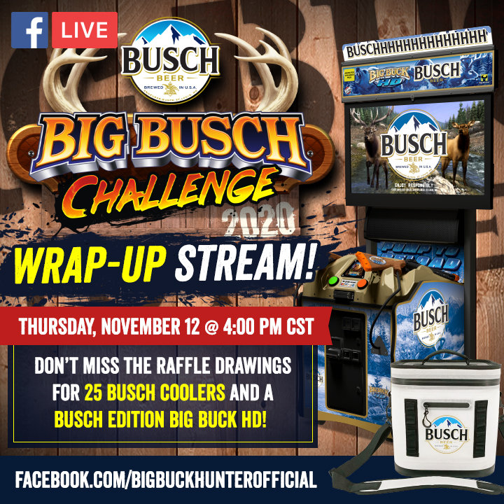 The 2020 Big Busch Challenge, which resulted in more than 1,600 plays and 1,000 Great White Bucks bagged, recently came to a conclusion and any one of those players who bagged that animal in the Big Buck Hunter game now has a chance to win a machine.