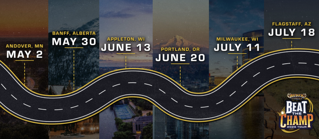 Gearing up for BuckFest 2026 and the Big Buck World Championship XIX from Oct. 23-24, Big Buck Hunter: Reloaded will run its Beat the Champ Tour from May through July. Players across the continent can register and compete against past champions, including 2025 World Champion Jordan Classen.