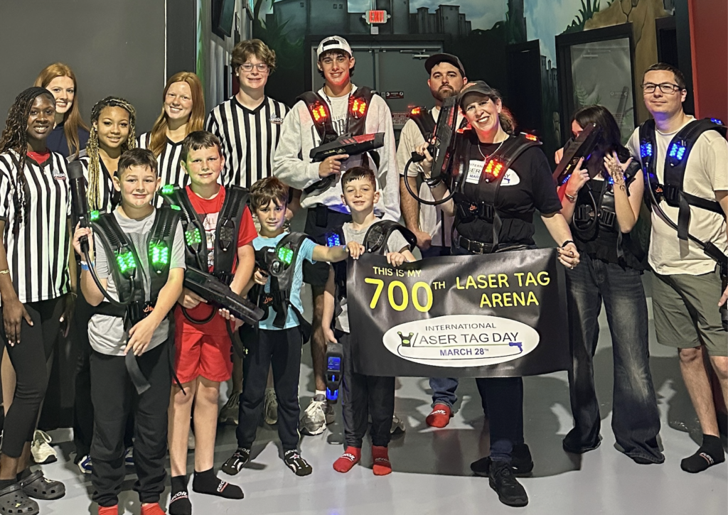 In celebration of Laser Tag Day on March 28, Laurie Jean Britton of TiviachickLovesLaserTag.com marked a personal milestone by playing her 700th laser tag arena during a visit to Recoil Trampoline Park in Valdosta, Georgia.