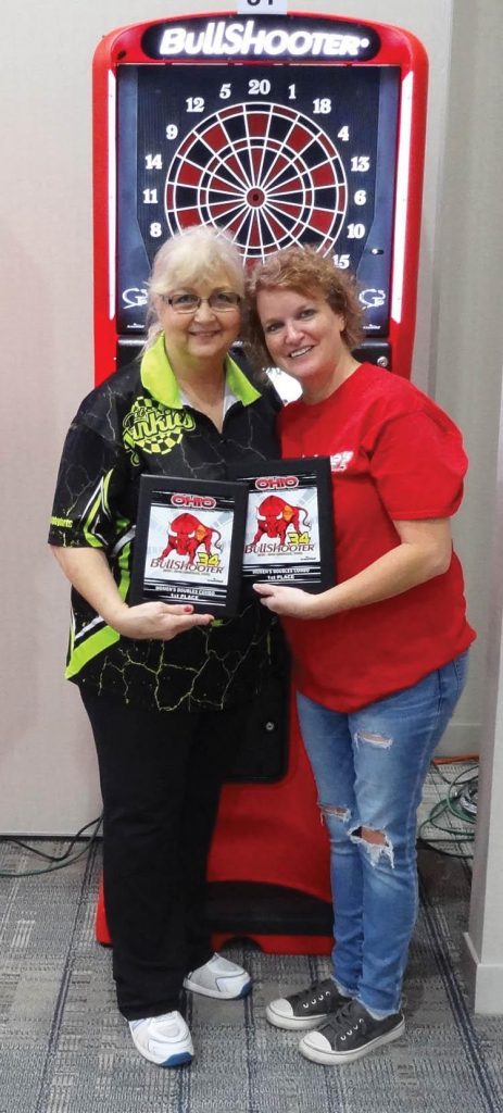 Many players did well over the weekend winning two championships. Wanda Coontz and her partner Crystal Leiter (pictured right) won championships in Women’s Doubles 301 and Women’s Double Combo.