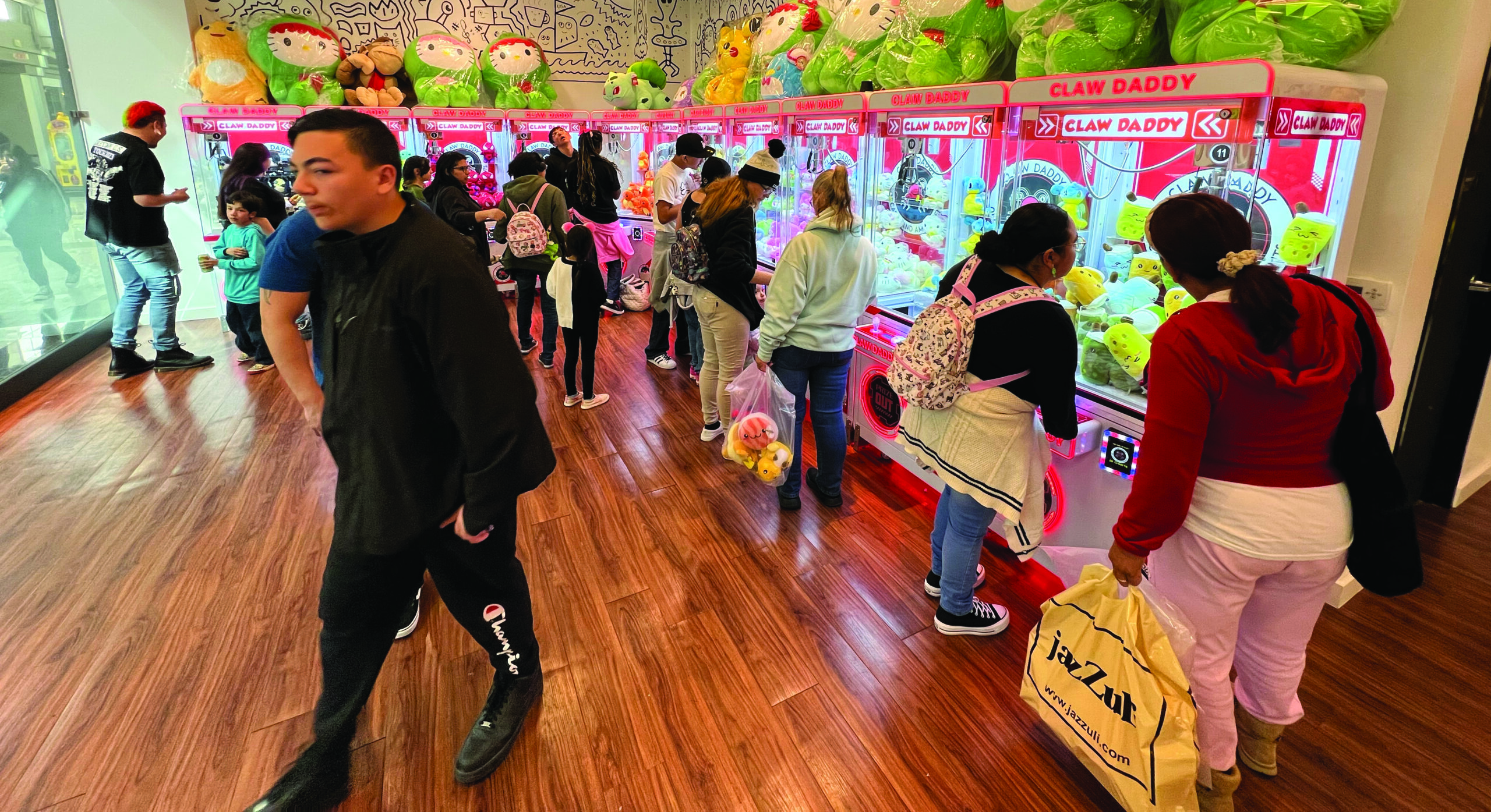 At that point, they scaled every few months. Now, Claw Daddy Arcades also has locations in Palmdale at the Antelope Valley Mall; Modesto at the Vintage Faire Mall; and San Diego at the Mission Valley shopping mall.