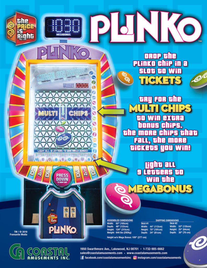Stop by Coastal Amusements’ Booth #1315 at IAAPA Expo to see their new Price is Right-inspired Plinko game – a redemption unit based on the hit TV show’s most popular game. Plinko made its TV debut in 1983, and soon it’ll be available at your favorite FECs.