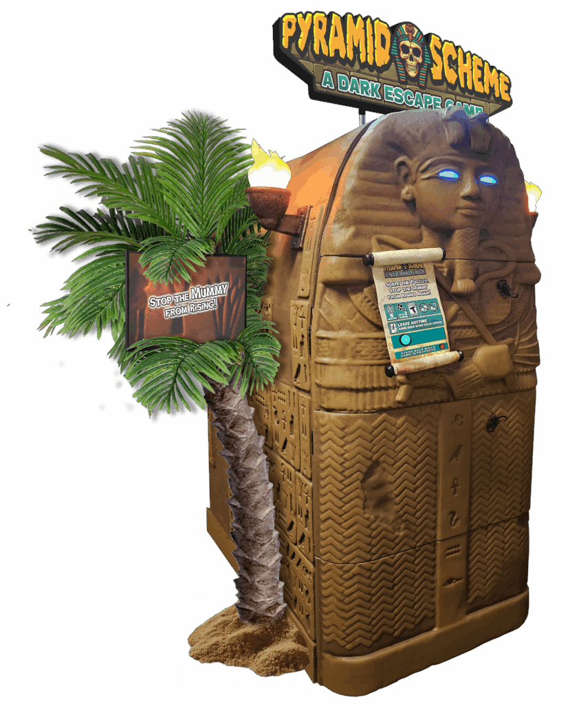 With Pyramid Scheme, you and a guest or two are stuffed in a sarcophagus. An archaeologist explains that you’ve stumbled upon the tomb of Amenhotep Ra, just moments before an ancient curse allows him to rise again.