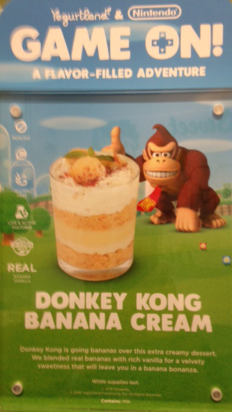 Well, folks, one of those serve-it-yourself chains called Yogurt Land is selling something close at their stores right now. Called Donkey Kong Banana Cream, it’s really pretty good. Seems like they made a deal with Nintendo to market a line of flavors based on the famous characters, including Donkey Kong himself.