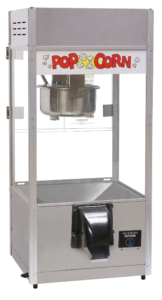 The company says the machine “combines the power of an 8-oz. popper with the convenience of a self-serve dispenser in one compact unit,” adding, “Operators can pop multiple batches then hold the popcorn in the warmed cabinet until it is dispensed. Customers will enjoy filling their cups or bags with fresh popcorn at the push of a button. This popper/dispenser makes self-serve popcorn accessible for nearly any location.”