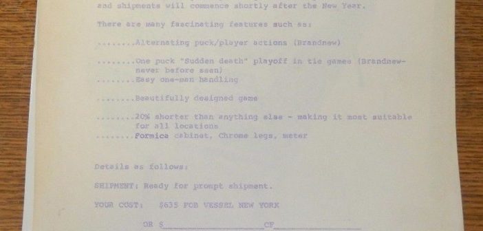 Gold Coast International chief Marc Haim recently came across an eBay listing for an old Chicago Coin Slap Shot Hockey game for sale at $35. Part of the listing was the letter (shown here) from Marc’s old R.H. Belam Co. signed by his late father Vic and dated January 1972. Apparently, the eBay seller kept it and wanted to show potential buyers how much the novelty game originally cost.