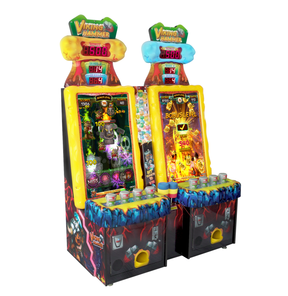 First off is the company’s striking video redemption game, Viking Hammer. Colorful cabinet design combines with fun play for this tall, two-player redemption game. It’s available in a ticket version, but operators can add a hopper kit to convert it into a vending game.