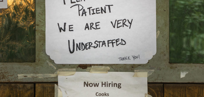 New technology is being employed to bridge the gap. I recently read that White Castle started using robots to prepare burgers and fries. Some companies are experimenting with drone delivery. Automated pizza delivery is being tried instead of people. Self-driving trucks and more robotics promise to replace people in the future.