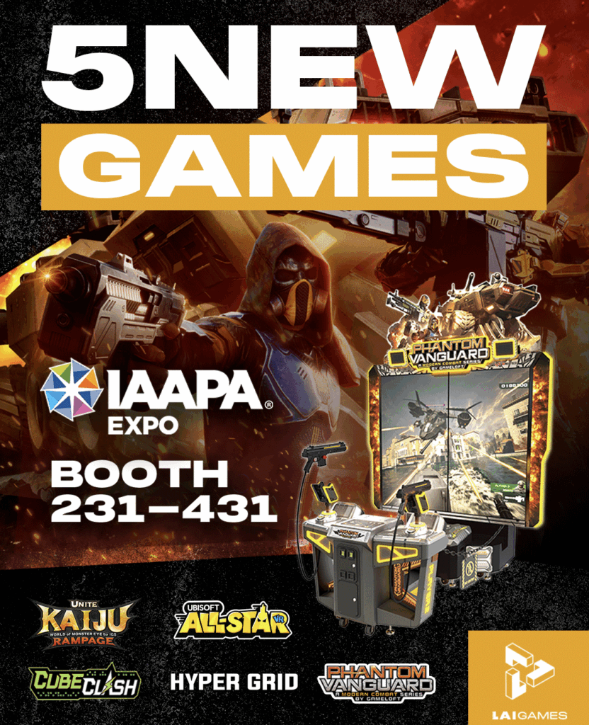 Be sure to stop by booths #231 and #431 at IAAPA Expo to see the debut of five new games from LAI. They include Ubisoft All-Star VR, Phantom Vanguard, Cube Clash, Kaiju Rampage Unite and Hyper Grid.