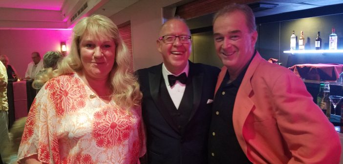 Wrote friend Chris Vecchione (sales veep of Universal Gaming Group PA, who send in the photos and info): “A top-shelf open bar, plenty of eats and an eight-piece band made for an exceptional fete.” The birthday boy even joined the band with his trademark harmonica!