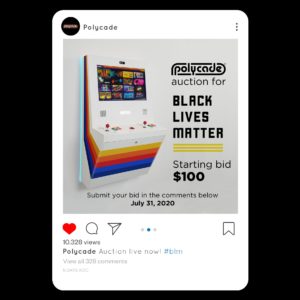 In an effort to raise money for Black Lives Matter, Polycade is auctioning off a machine live on their Instagram page today, July 31, starting at noon Pacific time. Just submit your bid in the comments on their post.