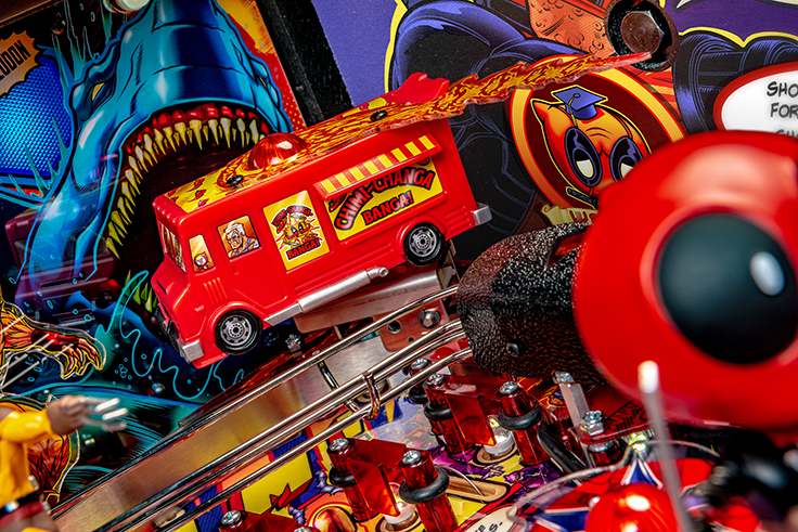 “A pinball shouldn’t be a hardcore, serious thing,” said George Gomez, Stern’s chief creative officer and lead designer of the game. “It should have a lot of humor in it. The most successful pins are the ones that make players smile; make players laugh. That interaction is integral to developing the game, so with Deadpool we wrote a script that was very specific to the game and the fact you’re playing pinball. We celebrate it.