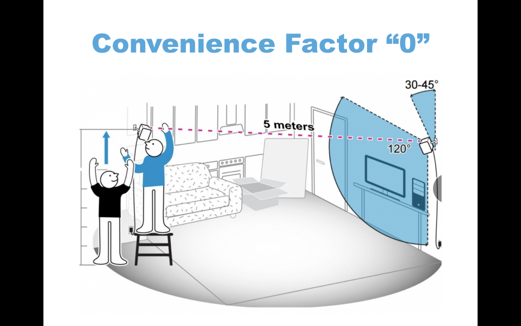 There was another entertainment technology that required this type of commitment: Xbox Kinect. This was a revolutionary technology that allowed your body to be the controller. Sound familiar? It ultimately failed because it was so inconvenient. (See their graphic of how to rearrange your furniture to safely play.)