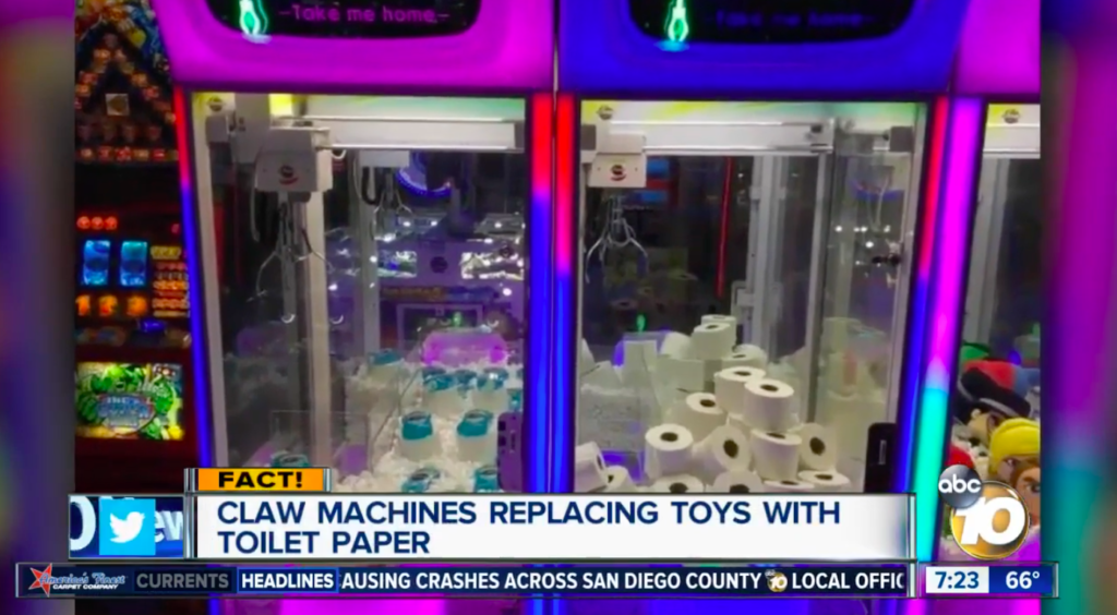 Now for a bit of levity… some claw machine operators have been replacing plush, toys and other prizes with toilet paper and hand sanitizer as coronavirus-induced panic buying of the products has swept much of the Western world. Here’s a video from ABC 10 News, which says one operator in the U.K. said it’s his “way of making fun of the people emptying out grocery stores in a panic over the coronavirus.” What’s in your cranes?